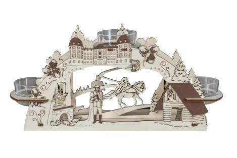 Preview: Drei Haselnüsse für Aschenbrödel zauberhaften Leuchter aus dem Erzgebirge. Er ist mit Motiven aus dem Märchenfilm. Er schafft eine romantische Stimmung. HIER
