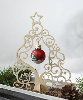 Mobile Preview: holznischel laserbaum mit glaskugel rot