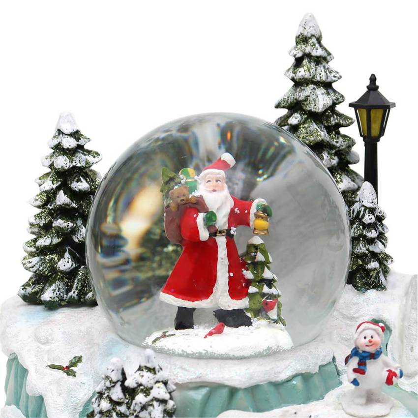 große Polyresin Schneekugel Weihnachtsmann und bewegte Eisenbahn