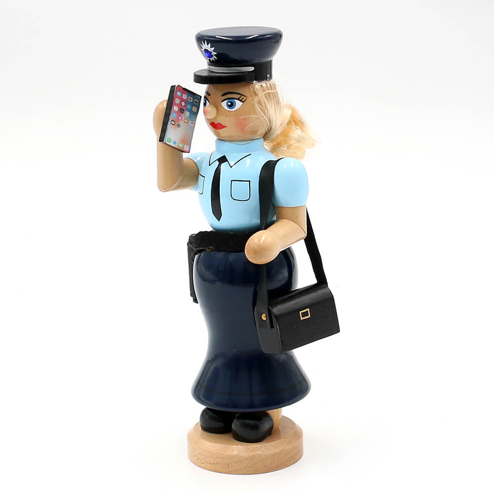 Räucherfrau „Polizistin“ aus Holz mit Uniform und Smartphone