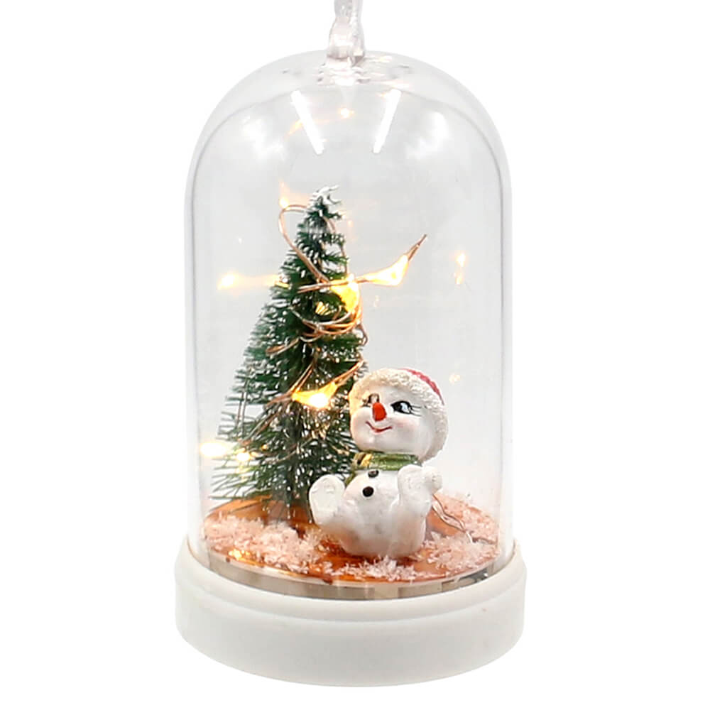 ply schneemann figuren in glocke led beleuchtet