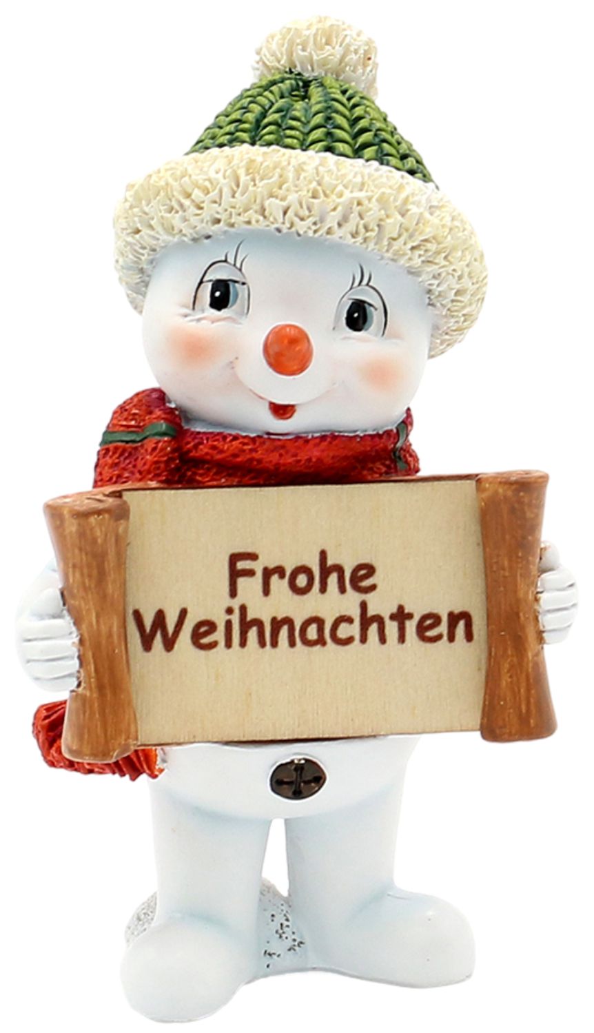 Polyresin-Schneemann Schneekindmit Mütze und Schal in Grün/Rot